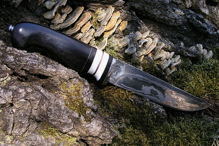 Čejen • čepel 15cm : 3cm (6" : 1.2"), 9-vrstvý sendvič • střenka 13cm : 3.5cm (5.2" : 1.4"), kombinace ebenu a jačí kosti